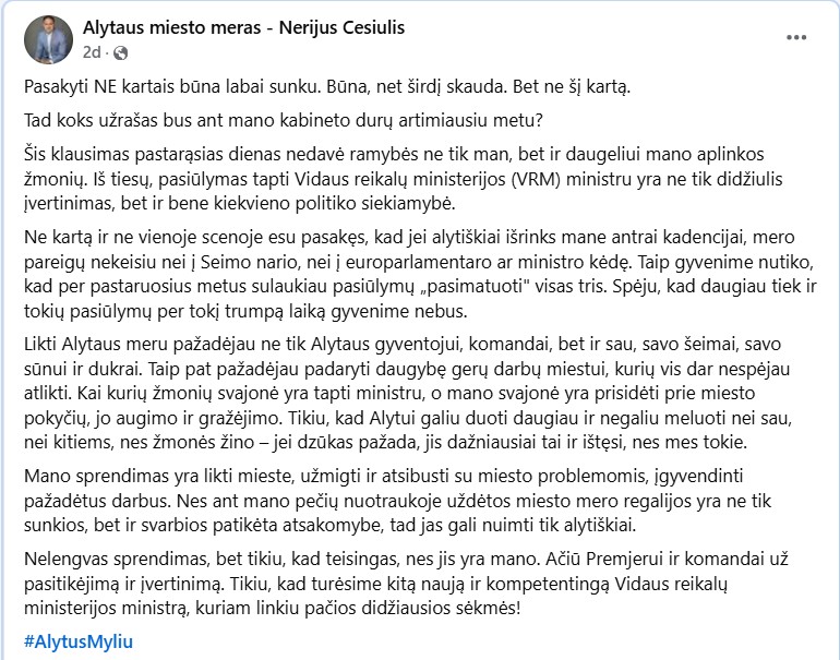 Burbulis galvojo, kad pas visus politikus vienodai kreiva moralė, bet socdemai rodo, kad  jų gretose yra perliukų. Štai, Alytaus miesto meras Nerijus Cesiulis provincijos politiko statuso nekeičia net į Vidaus reikalų ministro postą. Motyvas paprastas – mane išrinko meru ir aš iki galo vykdysiu savo įsipareigojimus savo krašto žmonėms.