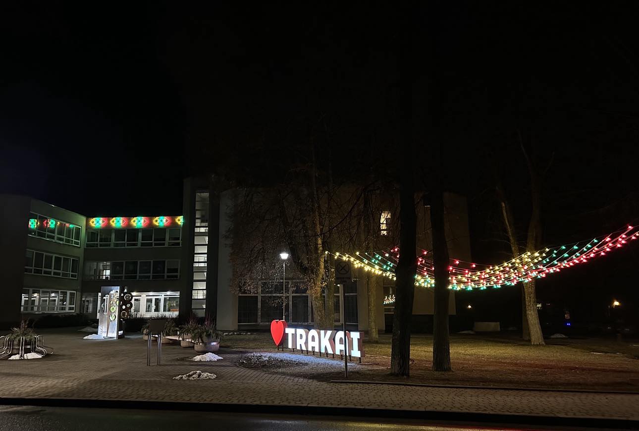 Svarbiausia, kad ryškiaspalvės  lemputės prie Trakų rajono savivaldybės negęsta. Taikos ir ramybės visiems!