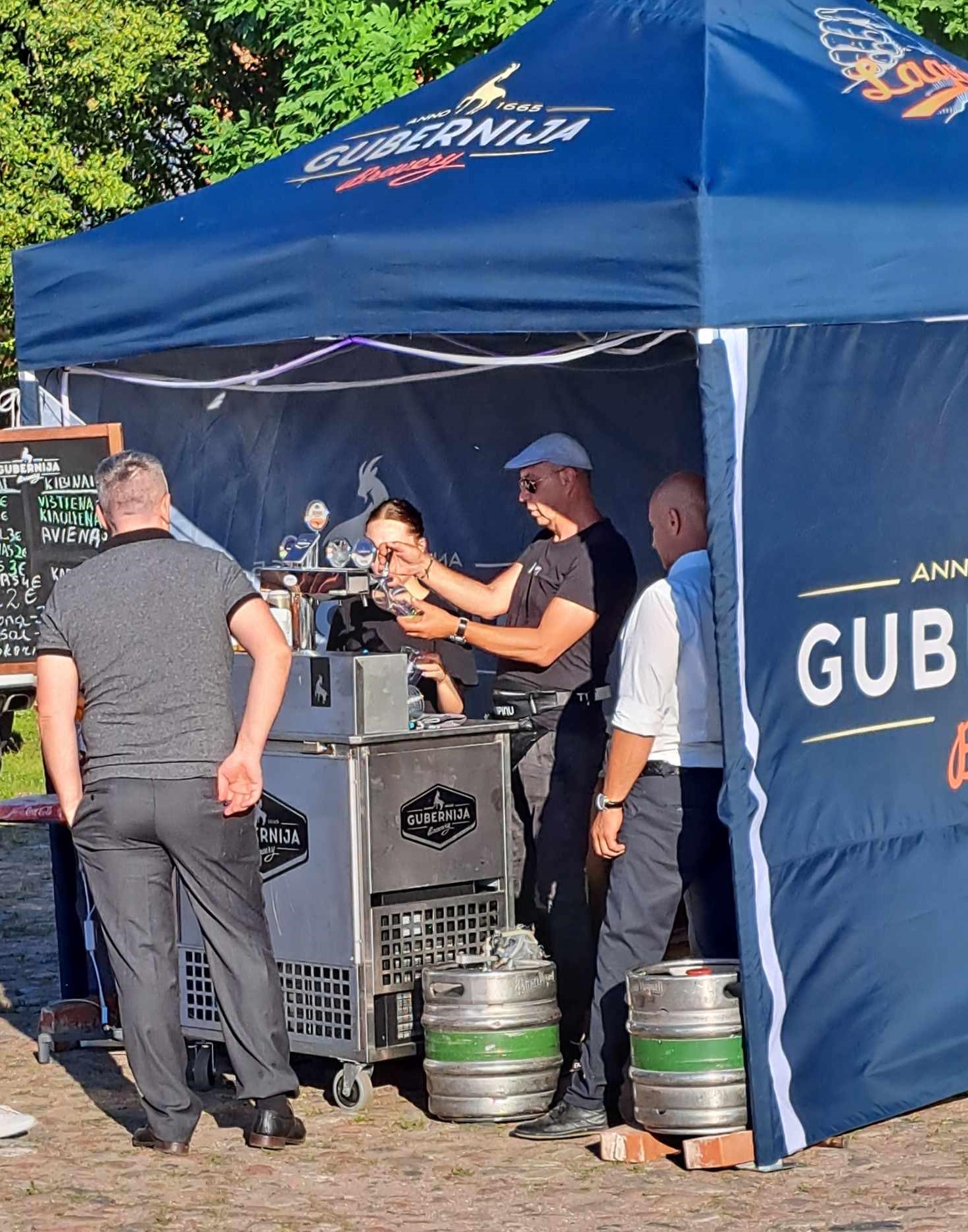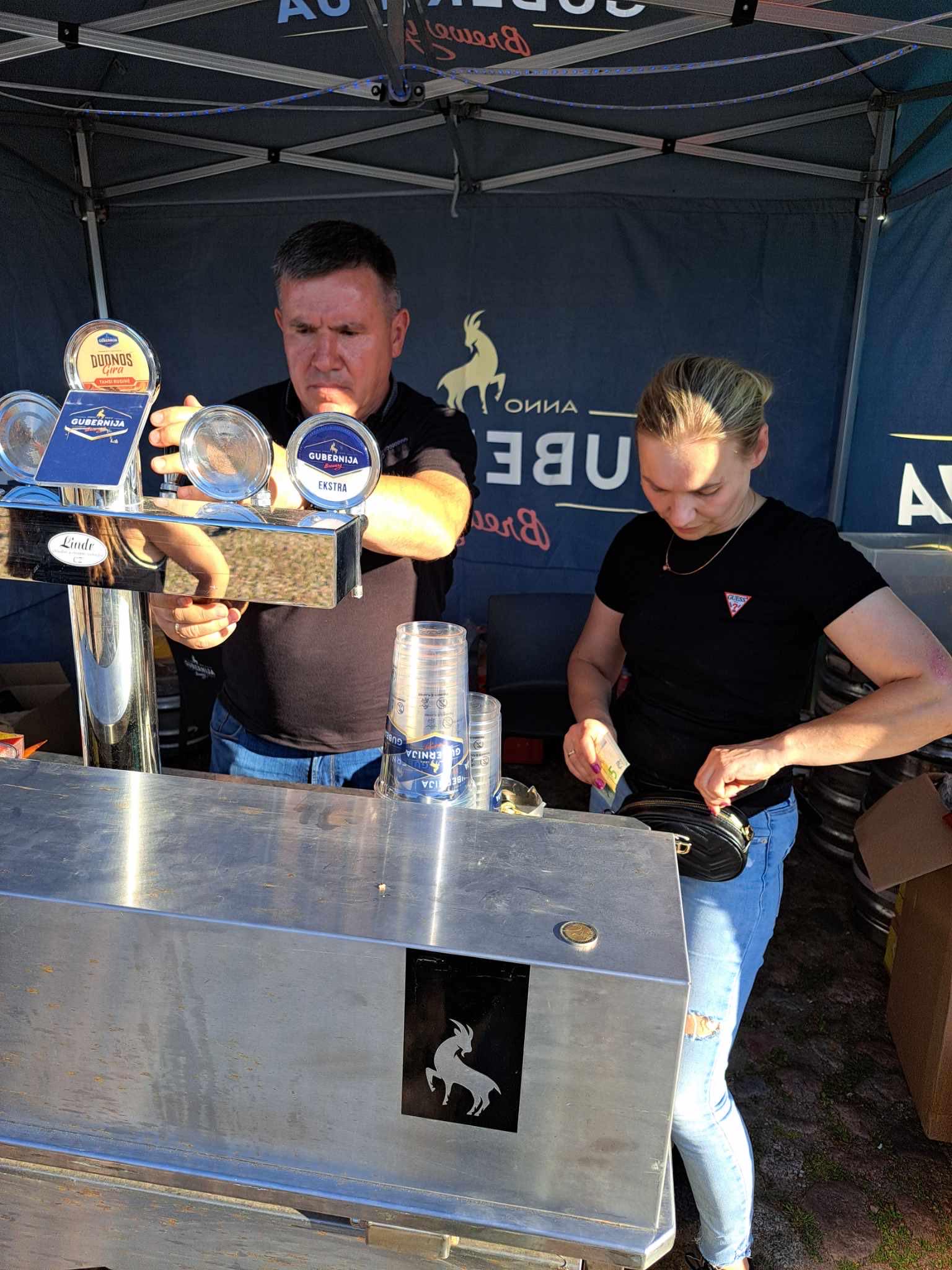 Burbulis nusprendė pasidairyti, kur čia galima būtų nusipirkti šalto alaus ir karštos duonos. Atsisuka ir mato dvi palapines. Bet šios dvi alaus palapinės, skirtingai nuo niekučių pardavėjų, ne konkuruoja tarpusavyje, bet viena kitą papildo – tiesiog stovi dvi palapinės su tokiais pačiais logotipais; vienoje palapinėje prie kranelio alutį pilsto ponas Dailydė, o kitoje palapinėje prie kranelio stovi Šatevičius pirmasis. Ir dar su tokia ryškiai mėlyna beretke, tokia bachūriška, kokią ir pats Burbulis mėgsta užsimaukšlinti.