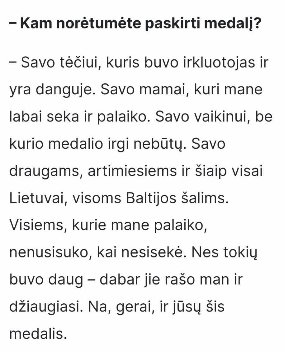 Nė vienas valdžiažmogis, nė vienas išverstaskūris trumparegis mūsų rajono kurmis neužsiminė, kad ech, va, Viktorija yra iš Trakų krašto, čia ji gyvena, čia ji sportuoja, bet ji nepriklauso Trakams! Ji – Klaipėdos irklavimo centro atstovė, nes kažkada ją atstūmėme, netikėjome ja. Vika, atleisk, mums!
